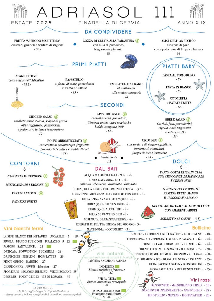 8 luglio 2025 / 0 comments NUOVO MENU’ RISTORANTE DI LUGLIO! NUOVO MENU DEL MESE DI LUGLIO PRONTO PRONTO PER ESSERE DEGUSTATO! TI ASPETTIAMO TUTTI I GIORNI D’ESTATE IN RIVA AL MARE IN COMPAGNIA DI BUONA MUSICA E DELLA BREZZA DEL MARE! Condividi: Condividi su X (Si apre in una nuova finestra) X Condividi su Facebook (Si apre in una nuova finestra) Facebook Condividi su Pinterest (Si apre in una nuova finestra) Pinterest Mi piace Caricamento...